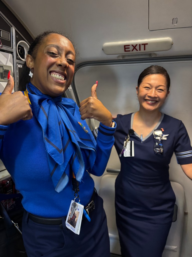 - Brittany, our flight purser, clearly loved her job. She used the cabin phone like a microphone, her hands as emotional magic wands, and her voice as a mood lifter. Her partner Takako was Robin to her Batman. It was one of the most enjoyable flight experiences I’ve had, even though I spent most of the flight collating those notes!
