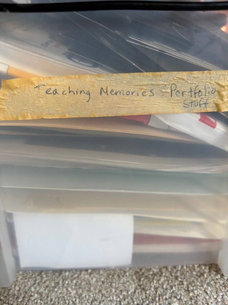 I knew it was there. I had looked at the pictures briefly when I had cleaned out the photo closet in our guest room during Covid. I had added them to my “teaching memories” box in the attic. I only had a few minutes to find the box before I had to change out of my “cookie party” outfit and into something more suitable for a 20th reunion.